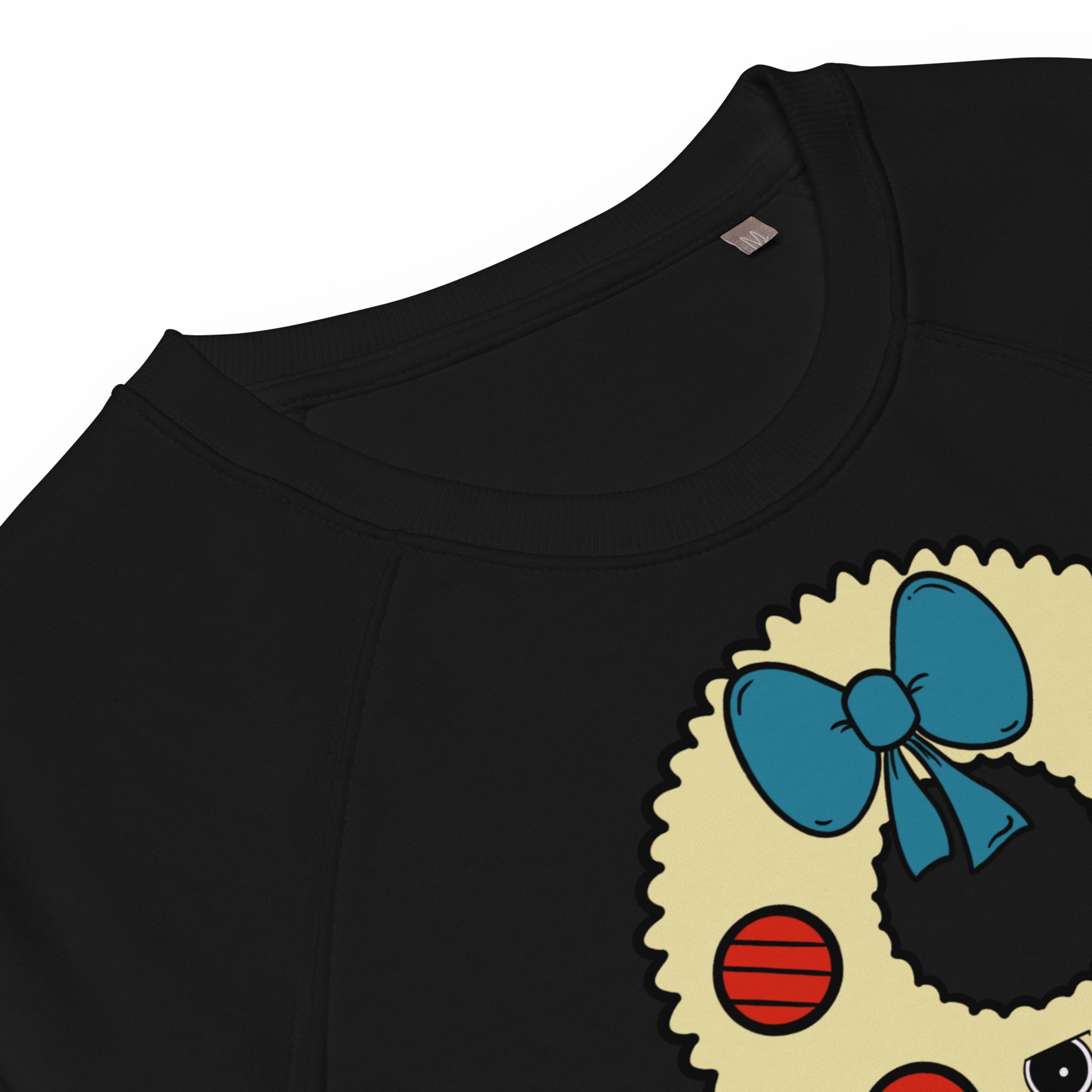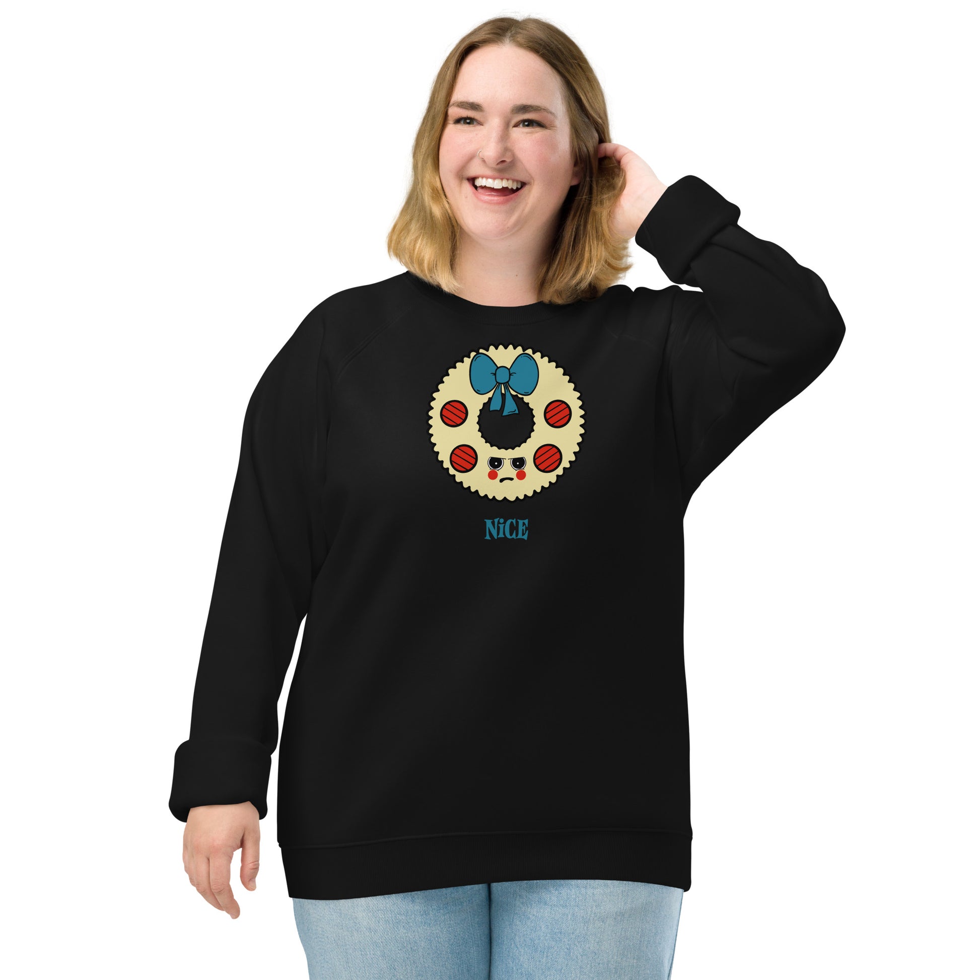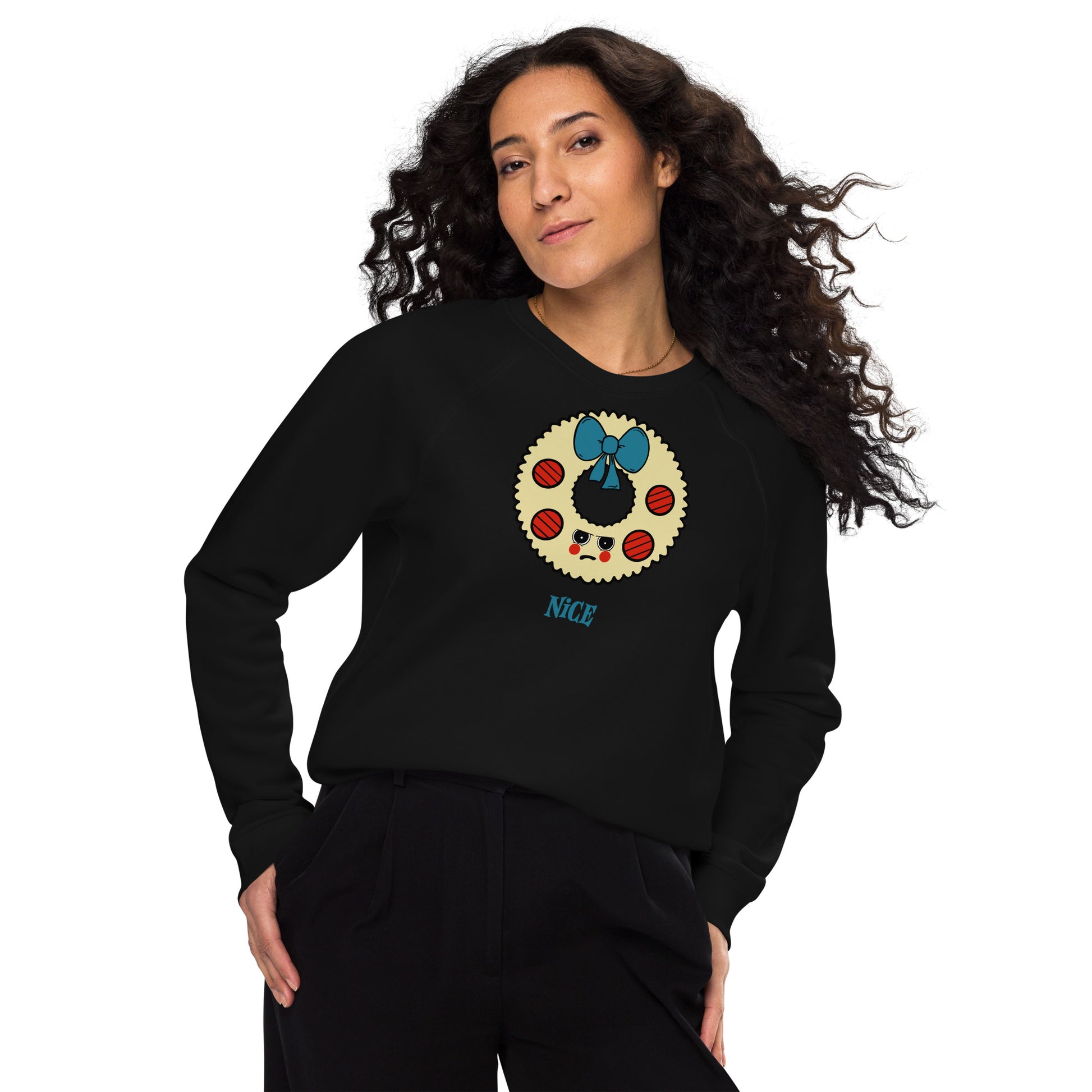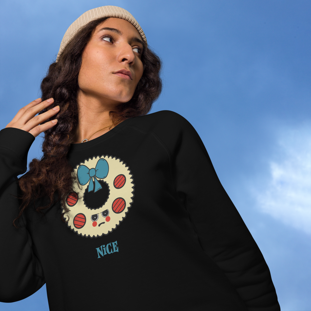 Feel comfy and look stylish at your next holiday potluck or ugly sweater event in this unisex organic raglan sweatshirt. Its brushed fleece lining will make you feel like you’re being hugged by a cloud of softness . . . and the 100% cotton exterior will ensure a smooth feel on the outside.